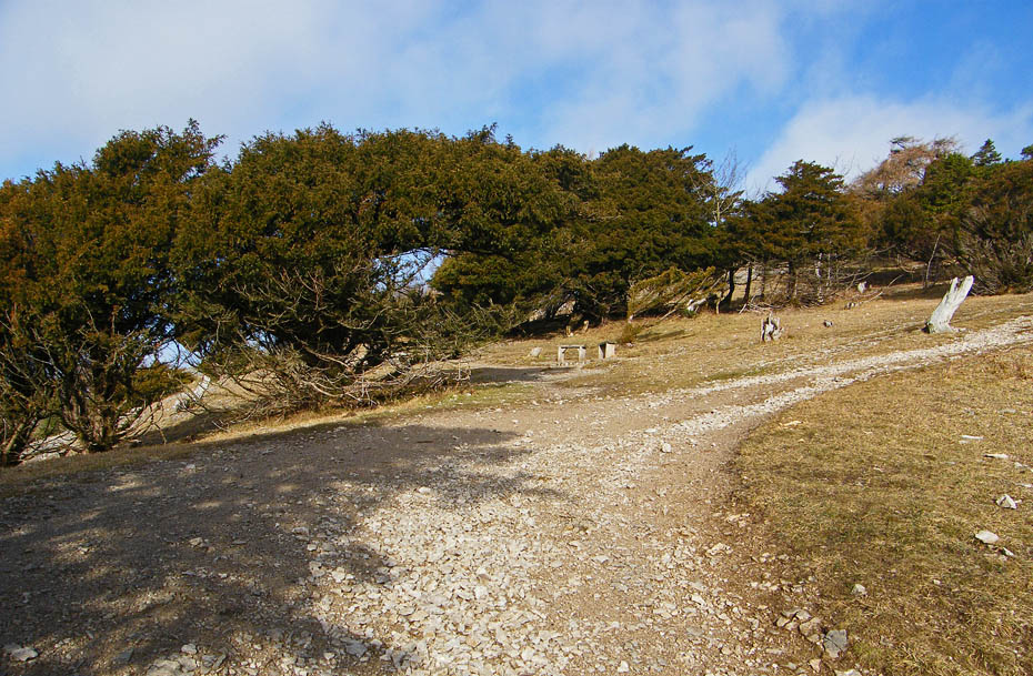 From the viewpoint it's a short climb to the summit passing that tree on the left.