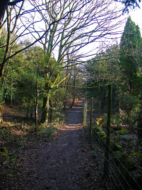 Having passed through the gate keep the wall on your left until the path swings to the right to contour around to meet the road.