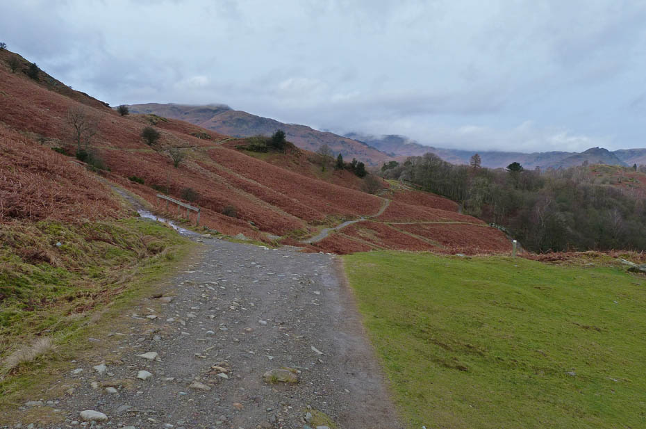 A look back over Rydal Water to Nab Scar as I walk up to the old quarries.