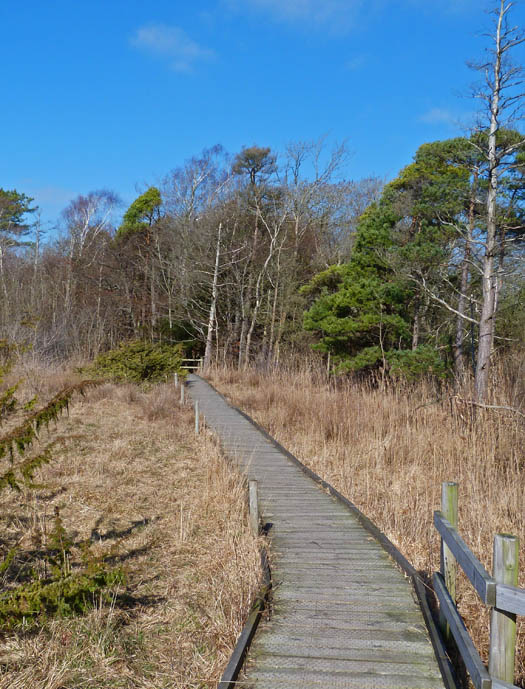 We left the car at the RSPB Visitor Centre and walked up the road to gain access to the Moss. Here we are passing a section of the Silverdale Golf Club. Just right of centre the top of the Trowbarrow Quarry can be seen which would be our return route.