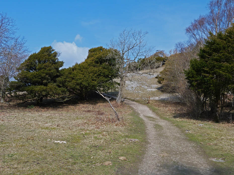 .....which was followed upwards until a gate was reached. After passing through the gate turn left and upwards towards the trees .