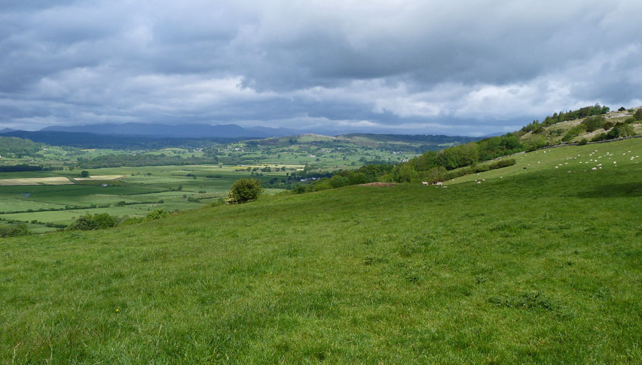 ....onto a grassy shelf giving me the opportunity to regain my breath whilst getting a few pictures. Looking over the Lyth Valley to Whitbarrow.