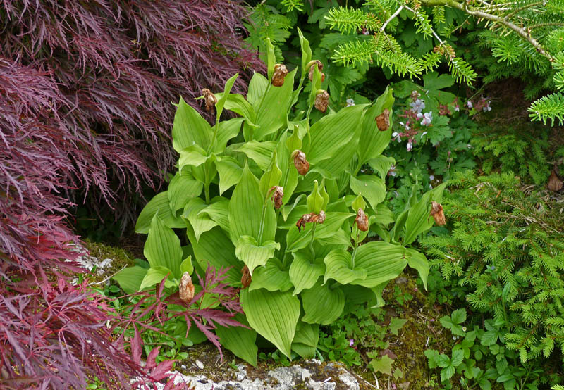 This all but took my breath away. I wasn't expecting to see a Lady's Slipper Orchid on full show even here. Although past its best it still had 12 flower heads in place.....I must remember to come next year....earlier!!