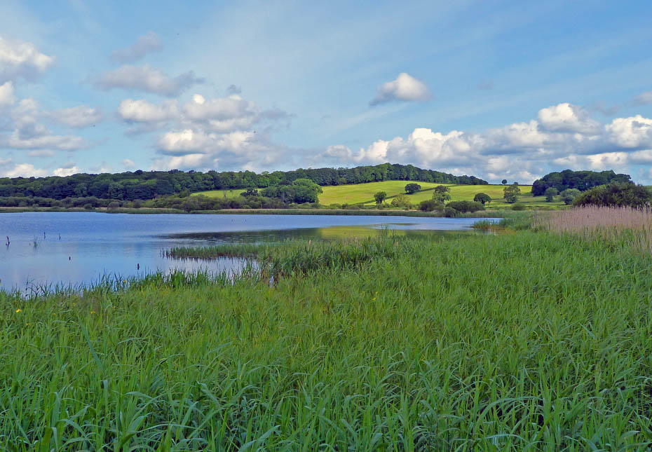 A look over to the southern end of Leighton Moss with Warton crag behind