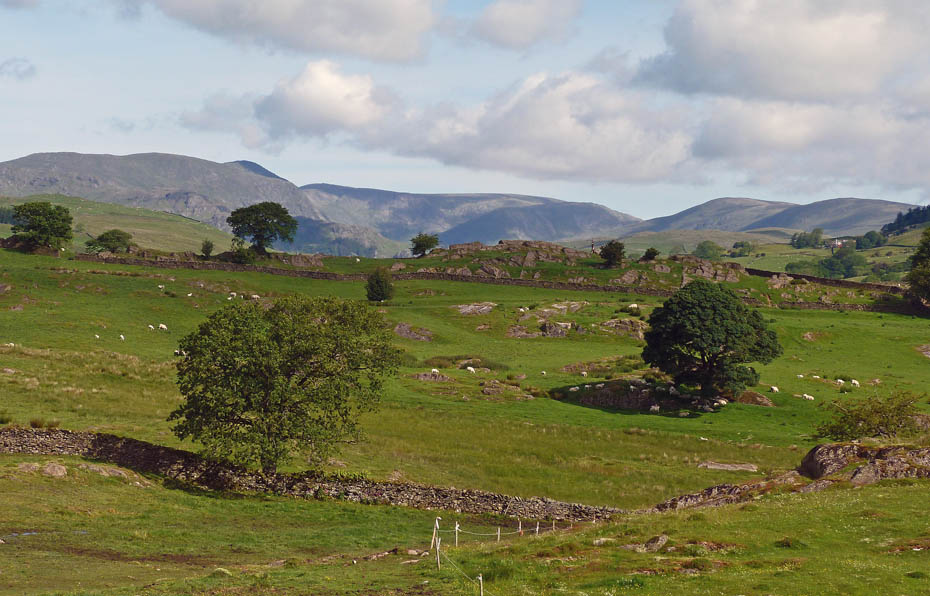 A little higher and the fells of Langdale appear over Littlewood Farm.