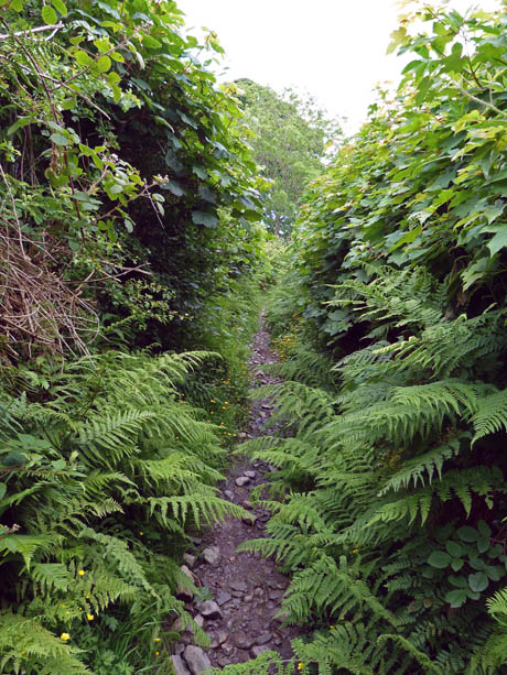 A right turn at the waymarker (l) and down through a short section of rather overgrown track (r)
