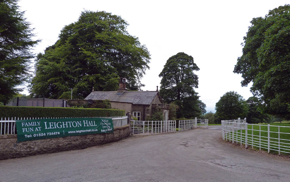 Passing the entrance to Leighton Hall. My path however is a short distance on...
