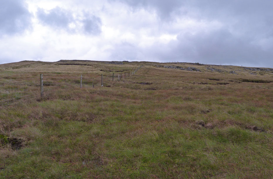 We followed the fenceline for a while before leaving it to head for the trig point. The route was tussocky and wet with some peat hags.