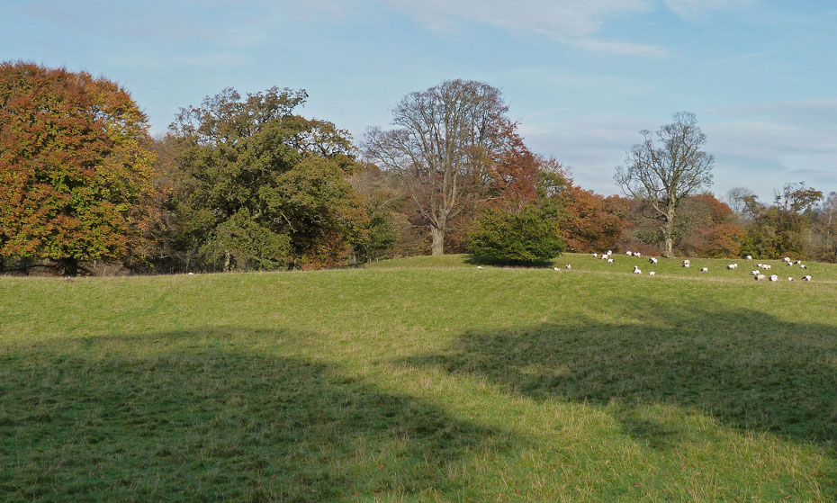 Looking over to Sizergh Fell as we walk across the fields towards the park.