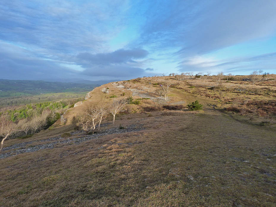 Our outward leg would follow the scar edge southwards into the weak sunlight with Arnside Knott in the distance.