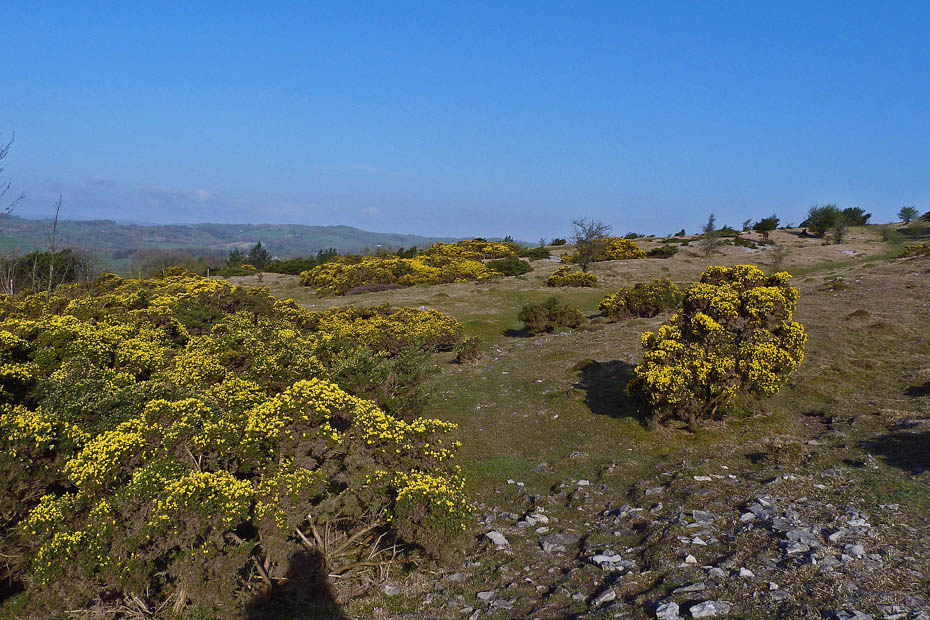 Now leaving the main summit path to go through the gorse bushes towards the scar edge.