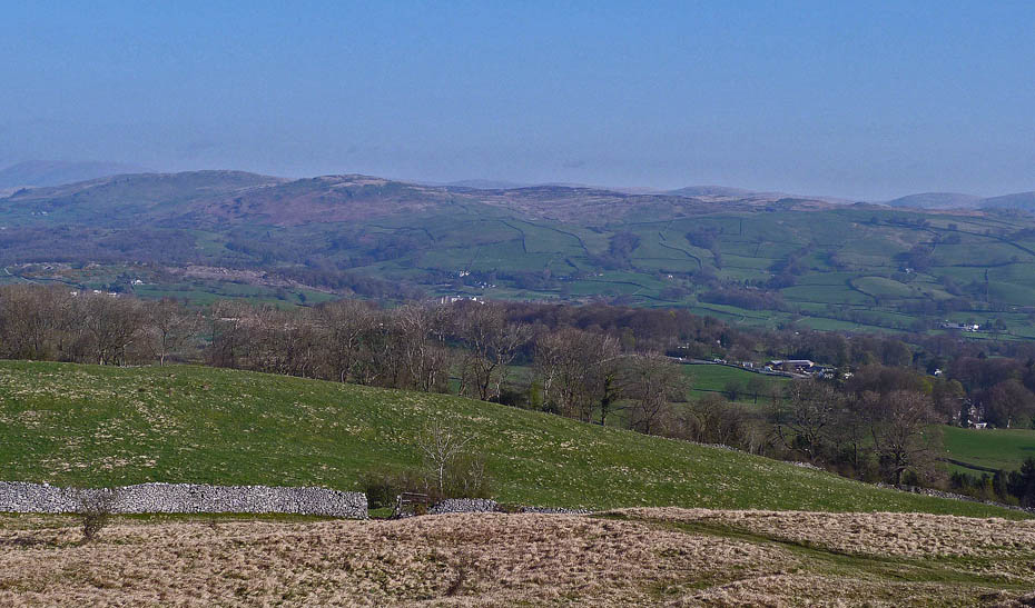 Having cleared the woods on my left the views open up across the Lyth Valley to the Coniston Fells (a little imagination may be useful here).